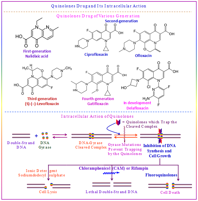 Figure 3.15: Various quinolone drugs and their mechanism of intracellular action.