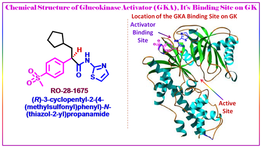 Joseph Grimsby et al., of Roche have recently discovered activators of glucokinase that increase kcat and decrease the S0.5 for glucose, and these may offer a treatment for type II diabetes. Glucokinase (GK) plays a key role in whole-body glucose homeostasis by catalyzing the phosphorylation of glucose in cells that express this enzyme, such as pancreatic β cells and hepatocytes. By screening of a library of 120,000 structurally diverse synthetic compounds, they found one small molecule that increased the enzymatic activity of GK. Chemical optimization of this initial molecule led to the synthesis of RO-28-0450 as a lead GK activator which is a class of antidiabetic agents that act as nonessential, mixed-type GK activators (GKAs) that increase the glucose affinity and maximum velocity (Vmax) of GK. RO-28-0450 is a racemic compound. Activation of GK was exquisitely sensitive to the chirality of the molecule: The R enantiomer, RO-28-1675, was found to be a potent GKA, whereas the S enantiomer, RO-28-1674, was inactive. RO-28-1675 also reversed the inhibitory action of the human glucokinase regulatory protein (GKRP). The activators binding in a glucokinase regulatory site originally was discovered in patients with persistent hyperinsulinemic hypoglycemi. The result of RO-28-1675 as a potent small molecule GKA may shed light to the chemical biologists to devise strategy for developing activators. Thus for a success to this end we must focus on highly regulated enzymes, or cooperative enzymes such as glucokinase, where nature has provided binding sites that are designed to modulate catalysis.