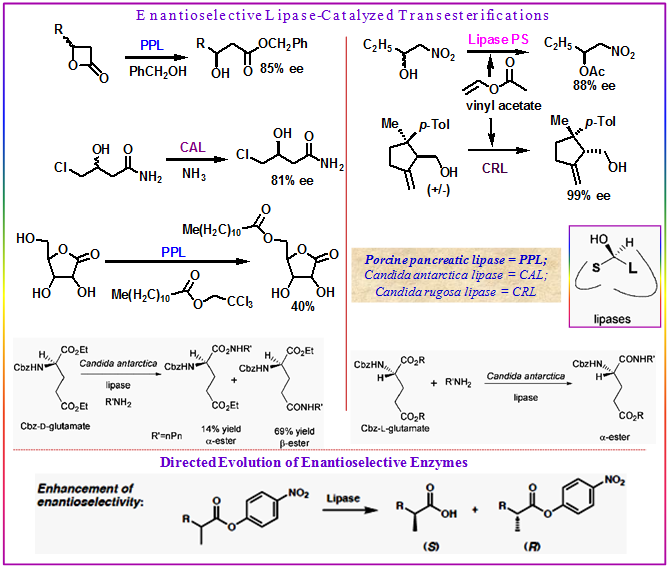 Figure 3.25: Examples of esterase catalyzed organic transformations.