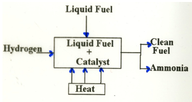 - One approach of fuel denitrogenation is to remove a large part of the nitrogen contained in the fuels. Nitrogen is removed from liquid fuels by mixing the fuels with hydrogen gas, heating the mixture and using a catalyst to cause nitrogen in the fuel and gaseous hydrogen to unite. This produces ammonia and cleaner fuel.