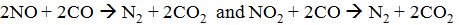 This carbon monoxide then reacts with the oxides of nitrogen “stored” in the barium nitrate, converting them to elemental nitrogen: