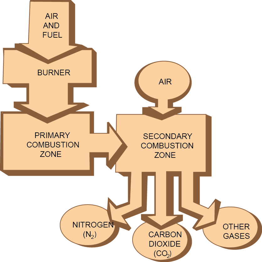 - In the second stage, more air is supplied to complete the combustion of carbon and carbon monoxide.