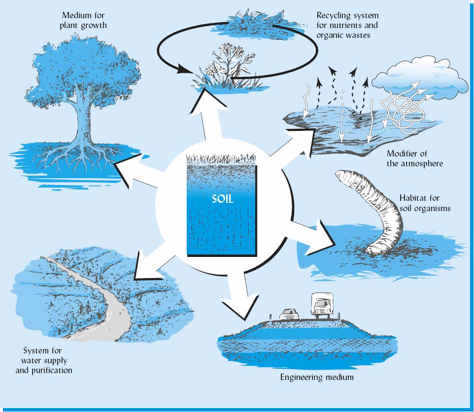 The main functions of soil can be grouped into six crucial ecological roles.