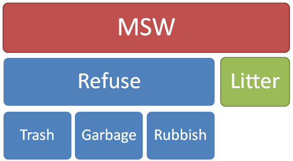 - Consists of household waste, construction and demolition debris, sanitation residue, and waste from streets.