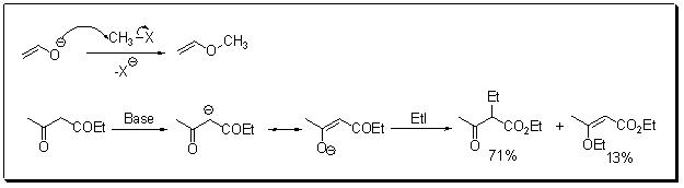 Enolates, like other nucleophiles, also undergo reaction with alkyl halides and sulfonates with the formation of carbon-carbon bonds. Depending on the reaction conditions and nature of the substrates, the reaction can occur either at oxygen atom or carbon atom of enolate (Scheme 7).