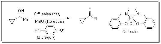 Another way to increase the E-factor is to use catalytic amount of chromium reagents for oxidation. Thus, Cr(III)-salen complexes have been used for oxidation of alcohols. The combination of Cr(III)-salen along with terminal oxidant PhIO is selective for allylic, benzylic and cyclopropyl alcohols (Scheme 6).