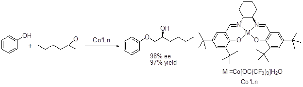 Chiral cobalt(III) salen complexes have been studied for the kinetic resolution of terminal epoxides with nucleophiles such as water and phenols with excellent enantioselectivity. 1,2-Epoxibutane with phenol gives α -aryloxy alcohol in 98% ee (Scheme 12).