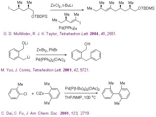 The coupling of organozinc compounds with alkenyl, akynyl, aryl, allylic and benzyl halides using Pd(0) provides another powerful method for carbon-carbon bond formation (Scheme 15). Section 3.3.3 presents the mechanism.