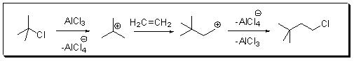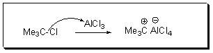 The reaction involves the generation of an electrophilic species with the aid of an acid which undergoes reaction with nucleophile. The electrophiles may be formed from an alkyl or acyl halide by treatment with a Lewis acid, e.g.