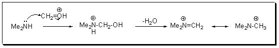 The electrophiles in the Mannich reaction are generated from an aldehydes and an amine in the presence of an acid e.g.