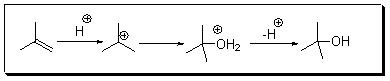 The reaction condition is crucial for the selectivity of the products. For an example, when dilute sulfuric acid is used, the first carbocation undergoes reaction preferentially with water to afford t-butanol as a major product.