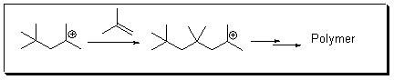 Alternatively, when more concentrated sulfuric acid is used, the second carbocation reacts with a further molecule of isobutylene to lead polymerization.