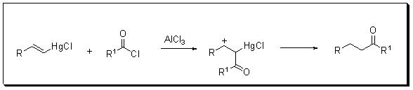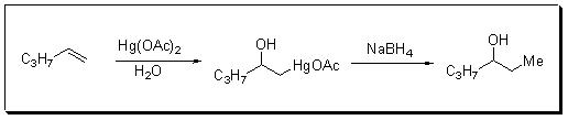 Organomercury reagents are usually prepared by the metal exchange reaction between mercury(II) salt and Grignard reagent or organolithium. Organomercury compounds have a significant degree of covalency in Hg-C bond. Hence, they are less effective as nucleophiles compared to Grignard reagent or organolithium. Thus, they do not react with aldehydes or ketones but they react with acid chlorides in the presence of a Lewis acid (Scheme 19). The most significant reaction involving an organomercury reagent is oxymercuration-demercuration protocol for hydroxylation of alkenes (Scheme 20). Unlike hydroboration, this reaction follows Markovnikov's principle. Another application of these reagents includes Hoffman-Sands reaction where an alkene can be converted to monobrominated alkanes (Scheme 21).