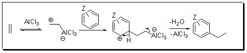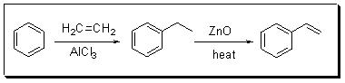For examples, the industrial production of styrene involves the ethylation of benzene using AlCl3 followed by dehydrogenation.