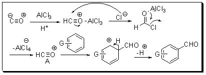 The formylation of aromatic compound can be accomplished by treatment with CO and HCI in the presence of Lewis acid. The reaction is performed either under pressure or using copper(I) chloride whose role may be to aid the reaction between CO and HCl via the complex which it forms with CO.