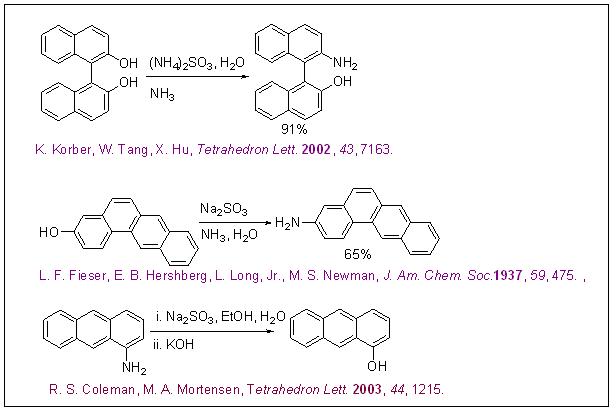 Some phenols proceed reaction with aqueous ammonium nitrite to give aromatic amines. The reactions are believed to take place via sulfite adduct of the keto-tautomer of phenol. Similarly, certain aromatic amines can be converted into phenols.