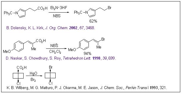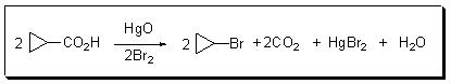 Mercury(II) and lead(IV) compounds are also known to react similarly. For example, cyclopropanecarboxylic acid with HgO and Br2 affords bromocyclopropane in 45% yield.