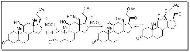 For example, the synthesis of aldosterone 21-acetate from corticosterone acetate has been demonstrated.
