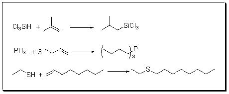 Elements such as sulfur, phosphorus and silicon can proceed reactions with alkenes and alkynes via radical catalyzed process. The characteristics of these reactions are similar to those described above. For examples,