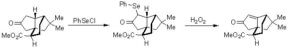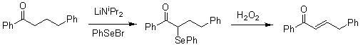 The reaction involves α selenylation of carbonyl compounds followed by oxidation of selenium with peroxides or peracids and subsequent elimination provides the desired α,β-unsaturated carbonyl compounds (Scheme 7).