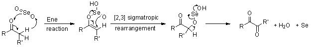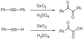 In the presence of acid, SeO2 oxidizes alkynes to give 1,2-dicarbonyl compounds. Internal alkynes can be converted into 1,2-diketones, where as terminal alkynes are transformed into glyoxylic acid (Scheme 5).