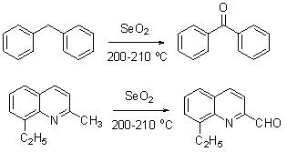SeO2 is also capable of oxidizing benzylic C-H bond to give aldehydes or ketones (Scheme 6). When the methylene group is flanked by two aromatic rings, the methylene is readily converted into ketone.