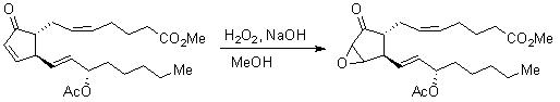 Alkaline-H2O2 is used for the epoxidation of α,β-unsaturated carbonyl compounds (Scheme 3). The method is straight forward and the products are obtained in high yield.