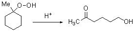 Under these conditions, 1-methylcyclohexyl hydroperoxide rearranges to give 7-hydroxyhept-2-one (Scheme 10).