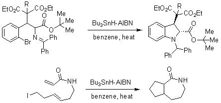 The radical cyclization of the suitably substituted halides could be performed in presence of TBTH to give the desired cyclized products (Scheme 3). The reaction undergoes via radical pathway.