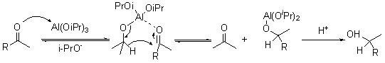 The reduction of aldehydes and ketones to the corresponding alcohols with aluminum isopropoxide [Al(OiPr)3] in the presence of 2-propanol (reverse of the Oppenauer Oxidation) is called Meerwein-Ponndorf-Verley reduction (Scheme 9).