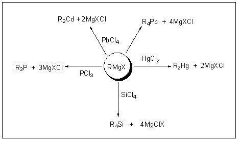 Organomagnesium halides react with inorganic halides to give organometallic compounds (Scheme 8).