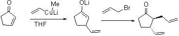In the case of enones, consecutive addition of the organocopper reagent and alkyl halides, two different alkyl groups can be introduced in one operation (Scheme 7).
