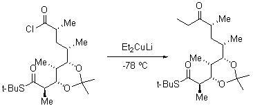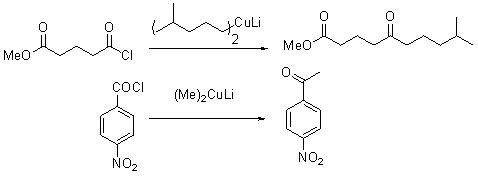 The reaction of a dialkyl cuprate and acid chloride is a preferred method to synthesize ketones (Scheme 5). Unlike in the case of Grignard reagents, the ketones formed do not react with organocopper reagent.