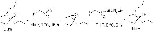 Opening of epoxides ring is more efficient with the higher order cuprate than with Gilman reagents, and attack takes place at the less sterically hindered carbon (Scheme 13).