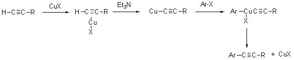 The coupling of terminal alkynes and aryl halides using copper(I) salt is called Castro-Stephens coupling (Scheme 7).