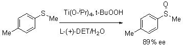These reaction conditions, Ti(Oi -Pr)4 , t -BuOOH and ( R,R ) or ( S,S )-diethyltartarate, could also be used for asymmetric oxidation of aryl alkyl sulfides (Scheme 14).