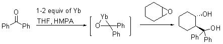 Organoytterbium complex derived from Yb and aryl ketone can be reacted with electrophiles such as ketones, epoxides, nitriles and carbon dioxide to afford the corresponding pinacol, 1,3-diol, α -hydroxy ketone, and α -hydroxy carboxylic acid, respectively (Scheme 22).