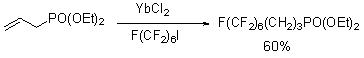 Addition of perfluoroalkyl iodide to alkenes containing ester, ether, alcohol, and phosphonate proceeds in the presence of YbCl2 in good yield (Scheme 24).
