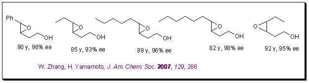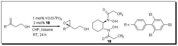 Few Studies are focused on chiral vanadium catalyzed the epoxidation of allylic alcohols. The epoxidation of homoallylic alcohol has been found to be successful (Scheme 8).