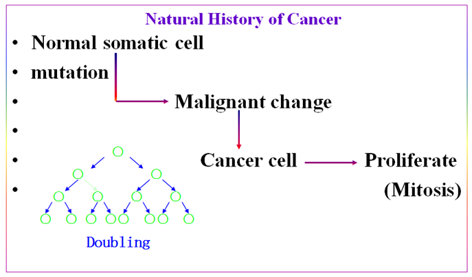 Cancer, known medically as a malignant neoplasm, is a broad group of various diseases, all involving unregulated cell growth. In cancer, cells divide and grow uncontrollably, forming malignant tumors, and invade nearby parts of the body. The cancer may also spread to more distant parts of the body through the lymphatic system or bloodstream. Not all tumors are cancerous. Benign tumors do not grow uncontrollably, do not invade neighboring tissues, and do not spread throughout the body. There are over 200 different known cancers that afflict humans.