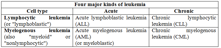 Clinically and pathologically, leukemia is subdivided into a variety of large groups. The first division is between its acute and chronic forms: