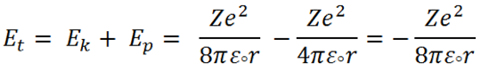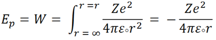 Potential energy of an electron in an atom is given by the work to be done to bring an electron from infinity to its radius ( r ).