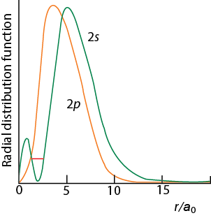 Figure 1.9. Penetration decreases from s to p as radial distribution close to nucleus for s is more compared to p . |
