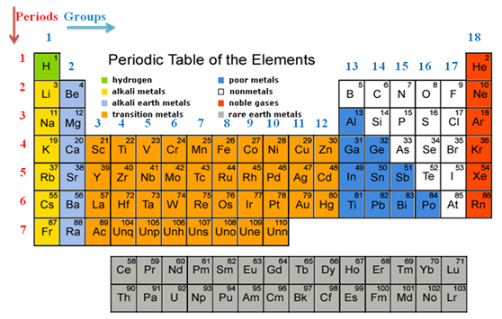 In the modern period table elements are placed progressively according to their atomic number. The table is consists of 18 groups and 7 periods. The arrangement is presented by Bury (1921) based on electron distribution in a Bohr-Sommerfeld atom model and also known as the Bohr table.