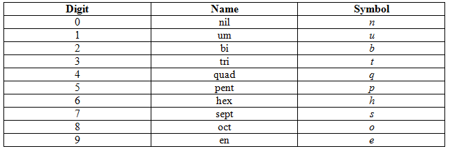 IUPAC name of the elements: