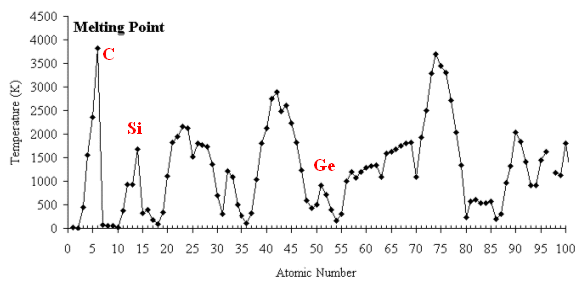 Figure1.14. Periodic variation of melting point of elements.