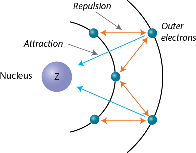 The difference in energies between subshells results in electron–electron repulsion which shields outer electrons from the nucleus.