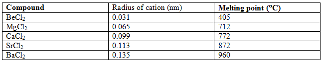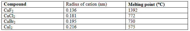 Examples: Decrease of covalent character with increase of cation radius