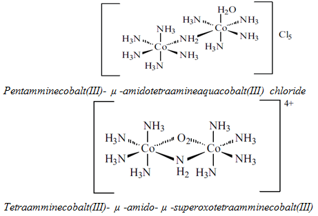 8) Bridging group: µ- is written as a prefix of the ligand name.