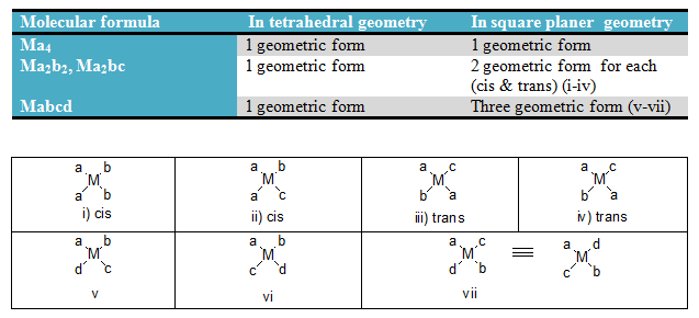 Geometric Isomerism for coordination no. 4